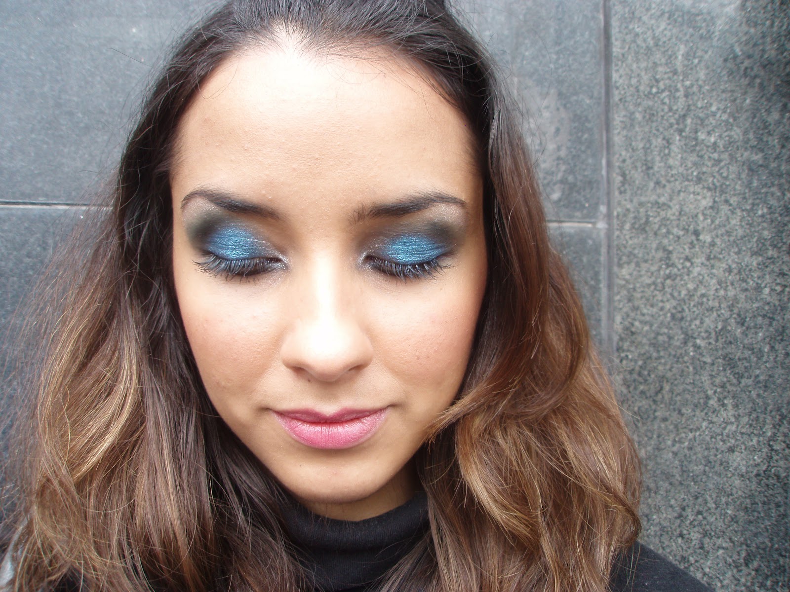 O primeiro look foi o eterno smokey eye, que suavizámos com uma outra cor para fugir um pouquinho ao preto.